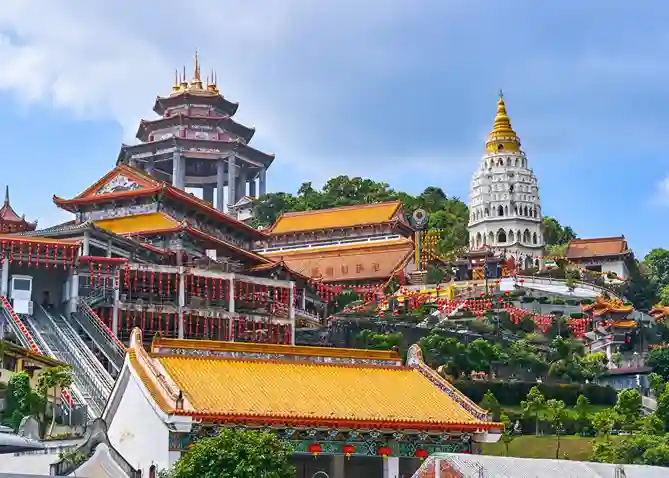 Sebagai pulau yang multikultural, Penang memiliki banyak tempat ibadah yang menjadi simbol kerukunan umat beragama. Salah satunya yang paling megah adalah Kek Lok Si Temple di Air Itam, kuil Buddha terbesar di Malaysia.